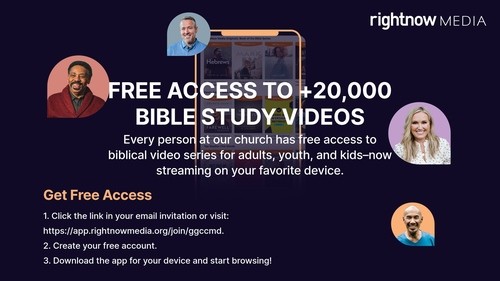 Introducing media resources designed for you and your busy family. GGCC is proud to partner with RightNow Media to provide a free video resource library that you can access online, on your phone or Smart TV. This easy-to-navigate media library features thousands of videos to help you find and follow Jesus.
